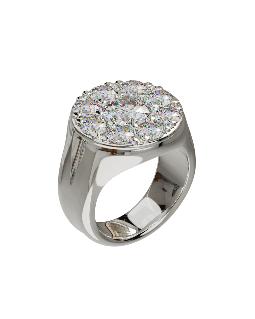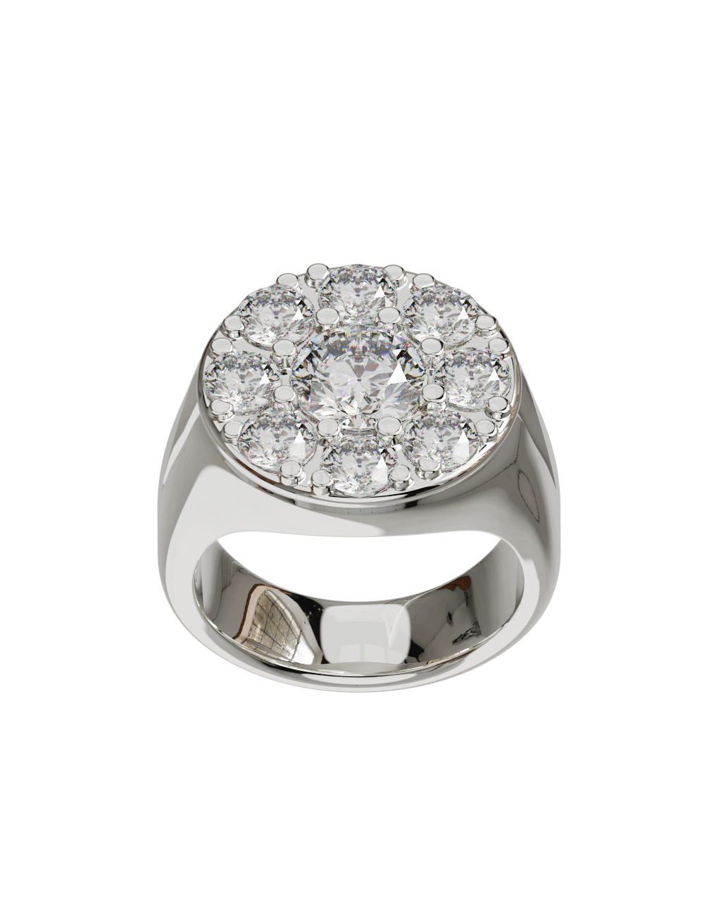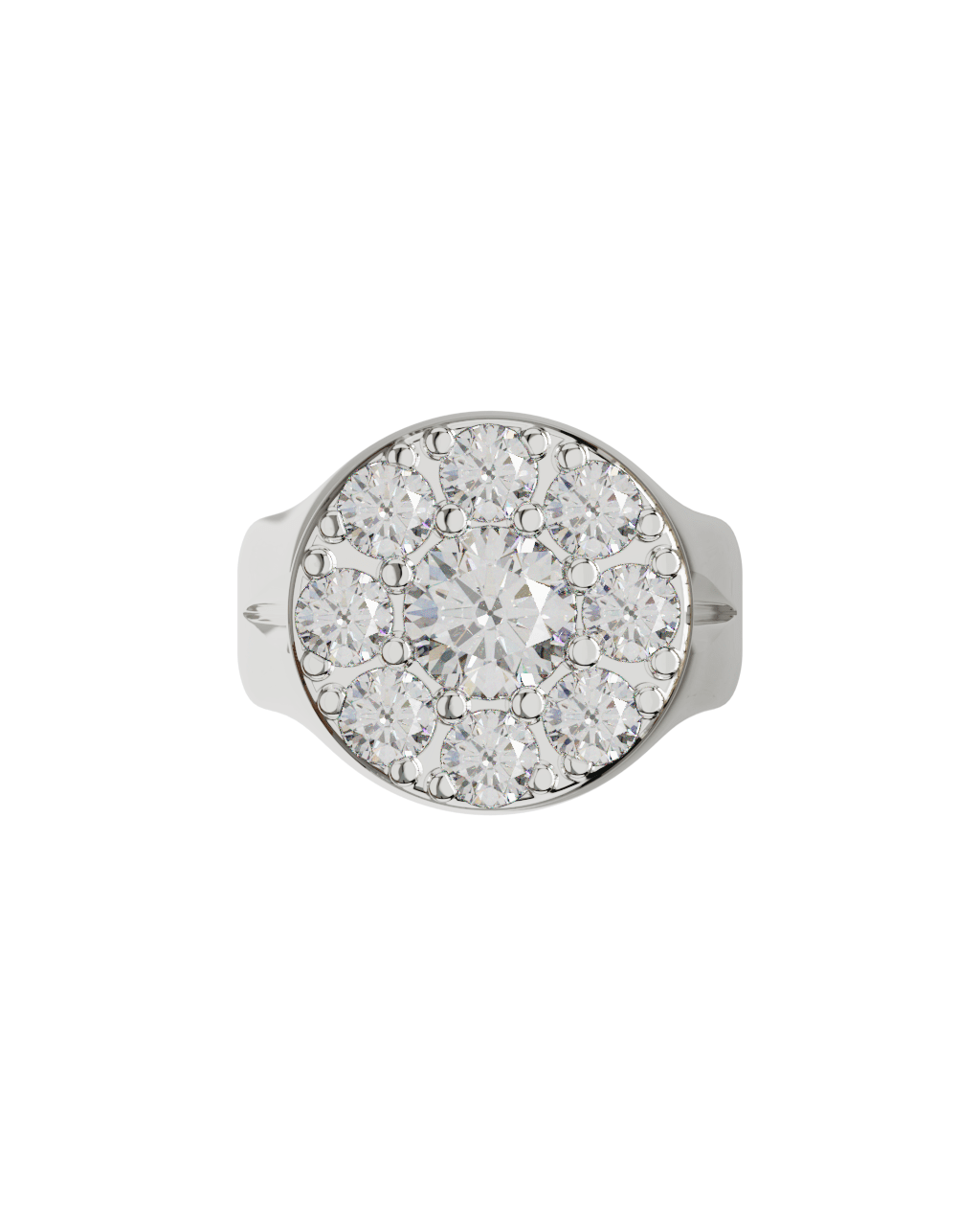 Spécifications : Or 750/1000 10.0gr, Diamant de synthèse Central Rond de 1.0Ct, D, VS+ de diamètre 6.50mm entouré de 8 diamants de synthèse Ronds de 0.20Ct soit 2.60Ct total