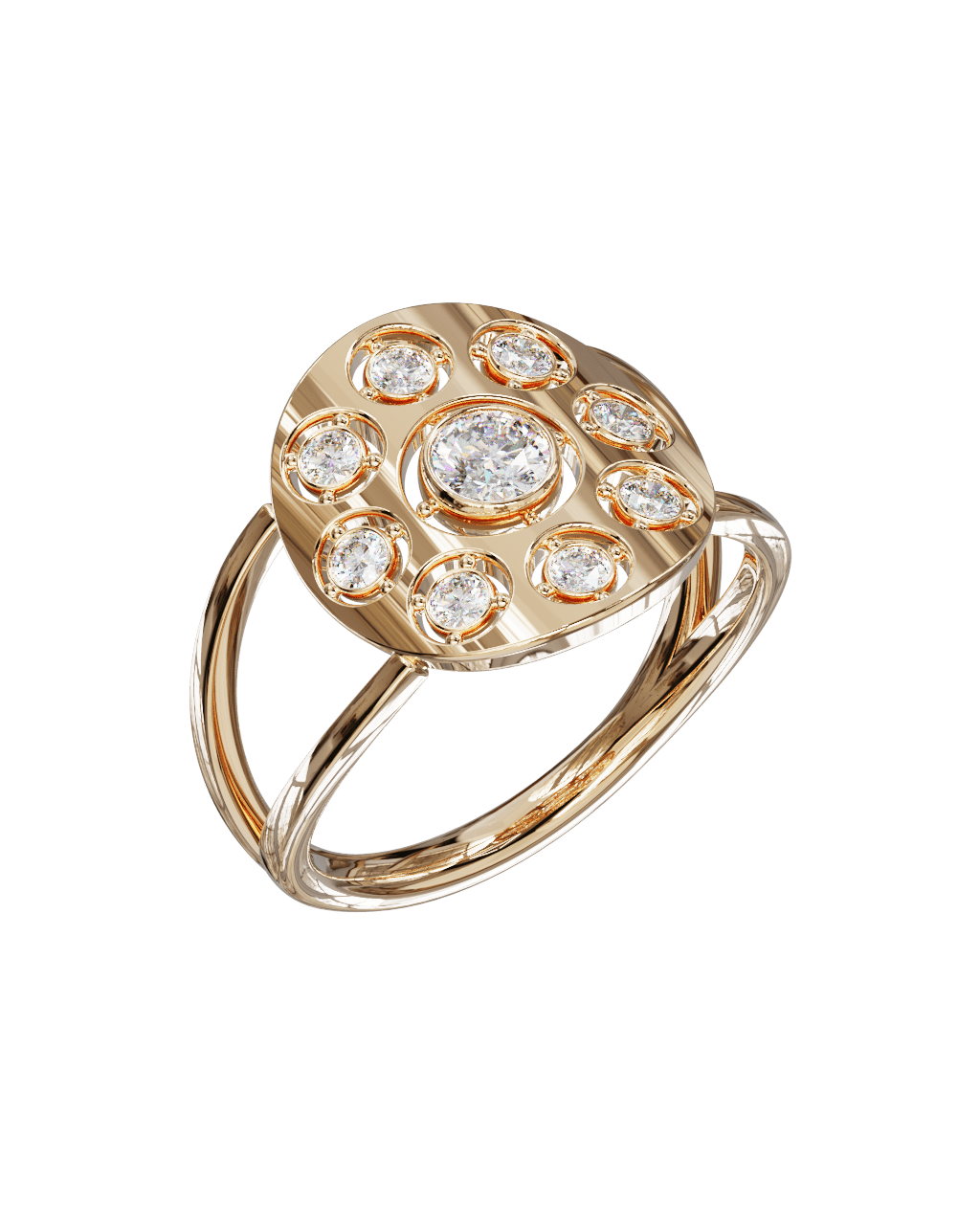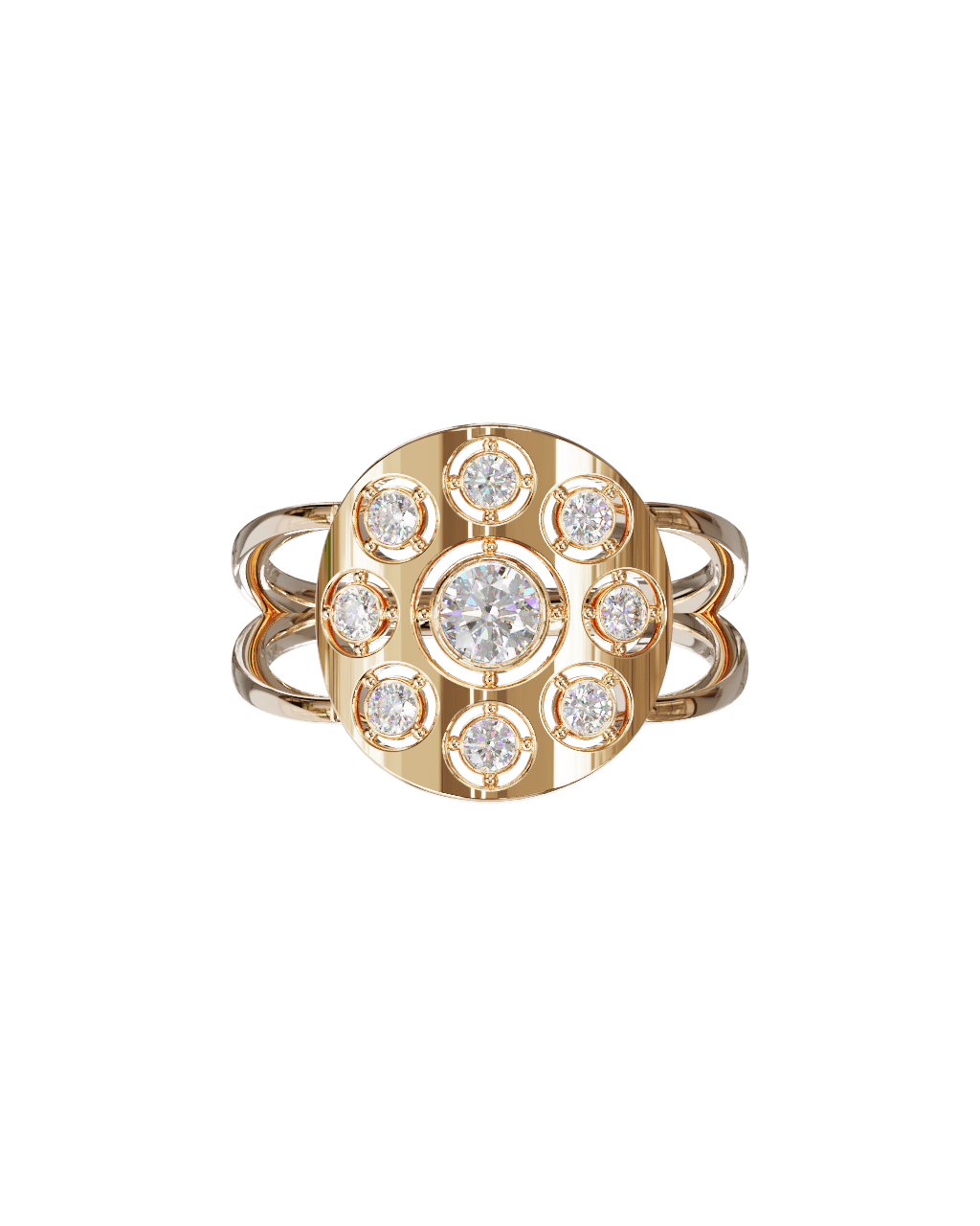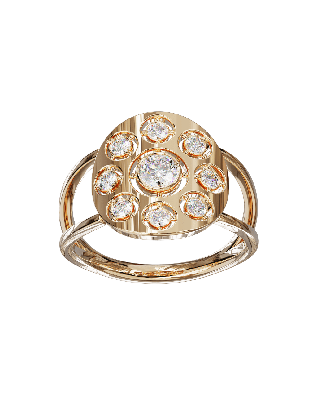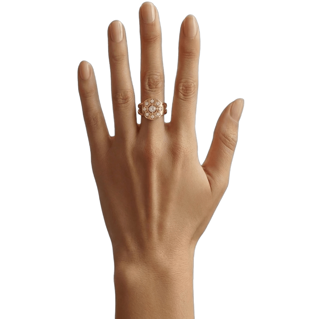 Spécifications : Or 750/1000 2.4gr, Diamant de synthèse Central Rond de 0.22Ct, D, VS+ de diamètre 3.9mm entouré de 8 diamants de synthèse Rond de 0.03Ct de diamètre 2mm soit 0.46Ct total