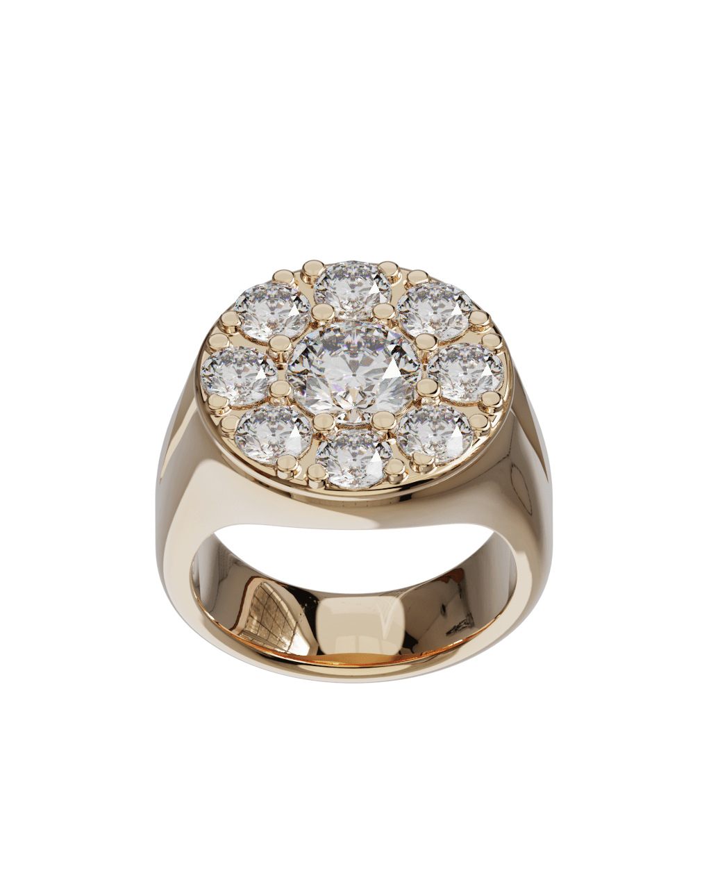 Spécifications : Or 750/1000 10.0gr, Diamant de synthèse Central Rond de 1.0Ct, D, VS+ de diamètre 6.50mm entouré de 8 diamants de synthèse Rond de 0.20Ct soit 2.60Ct total