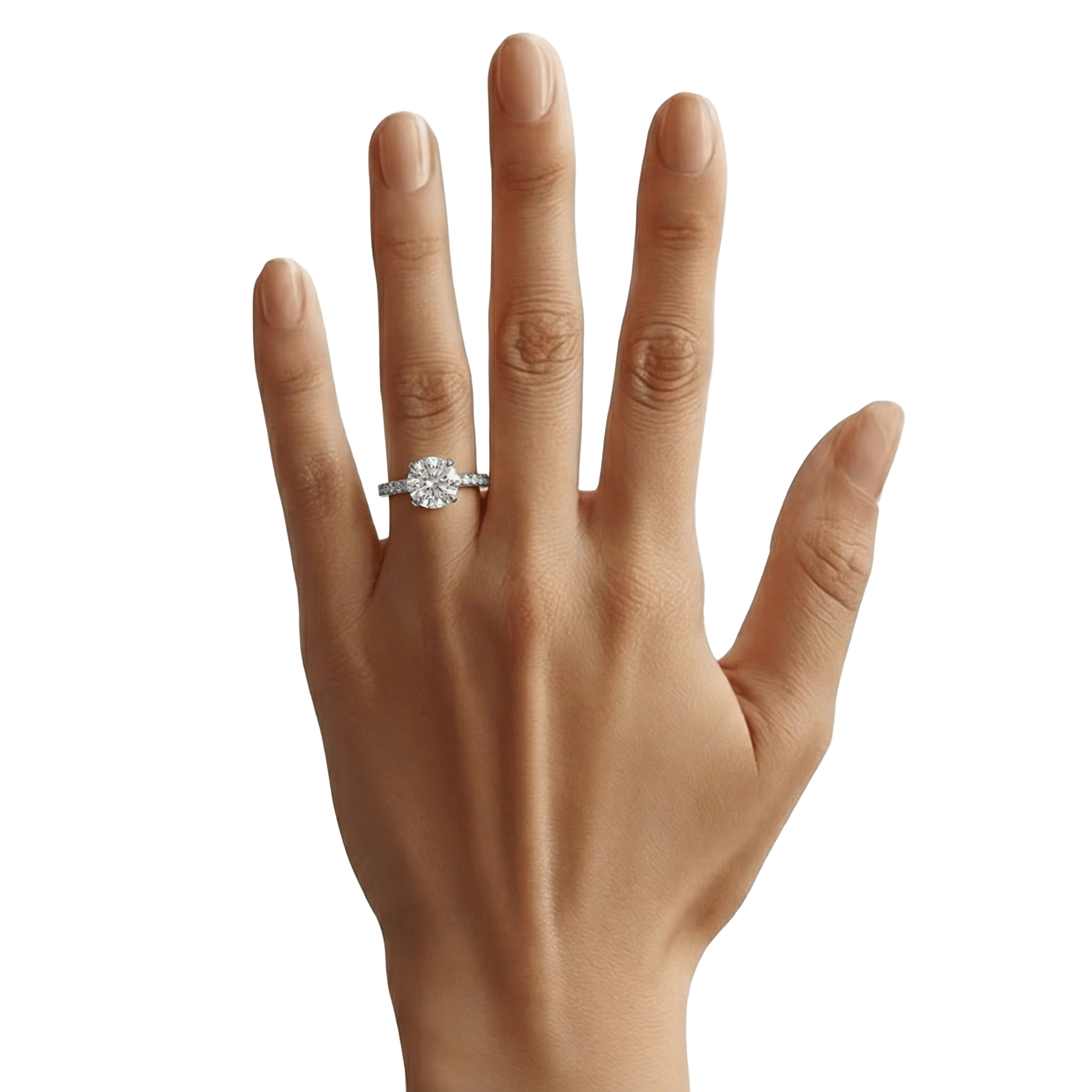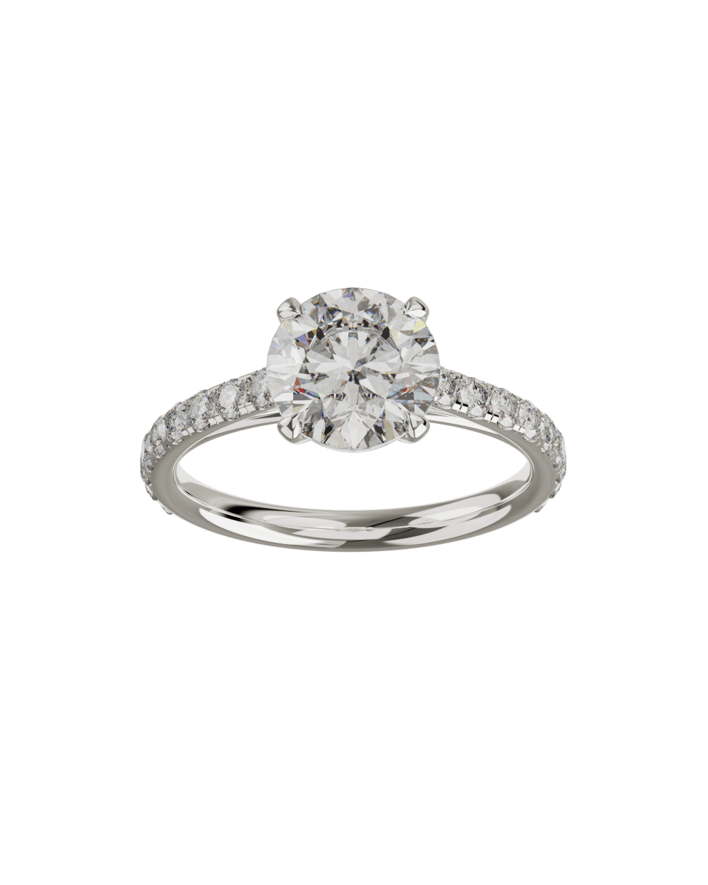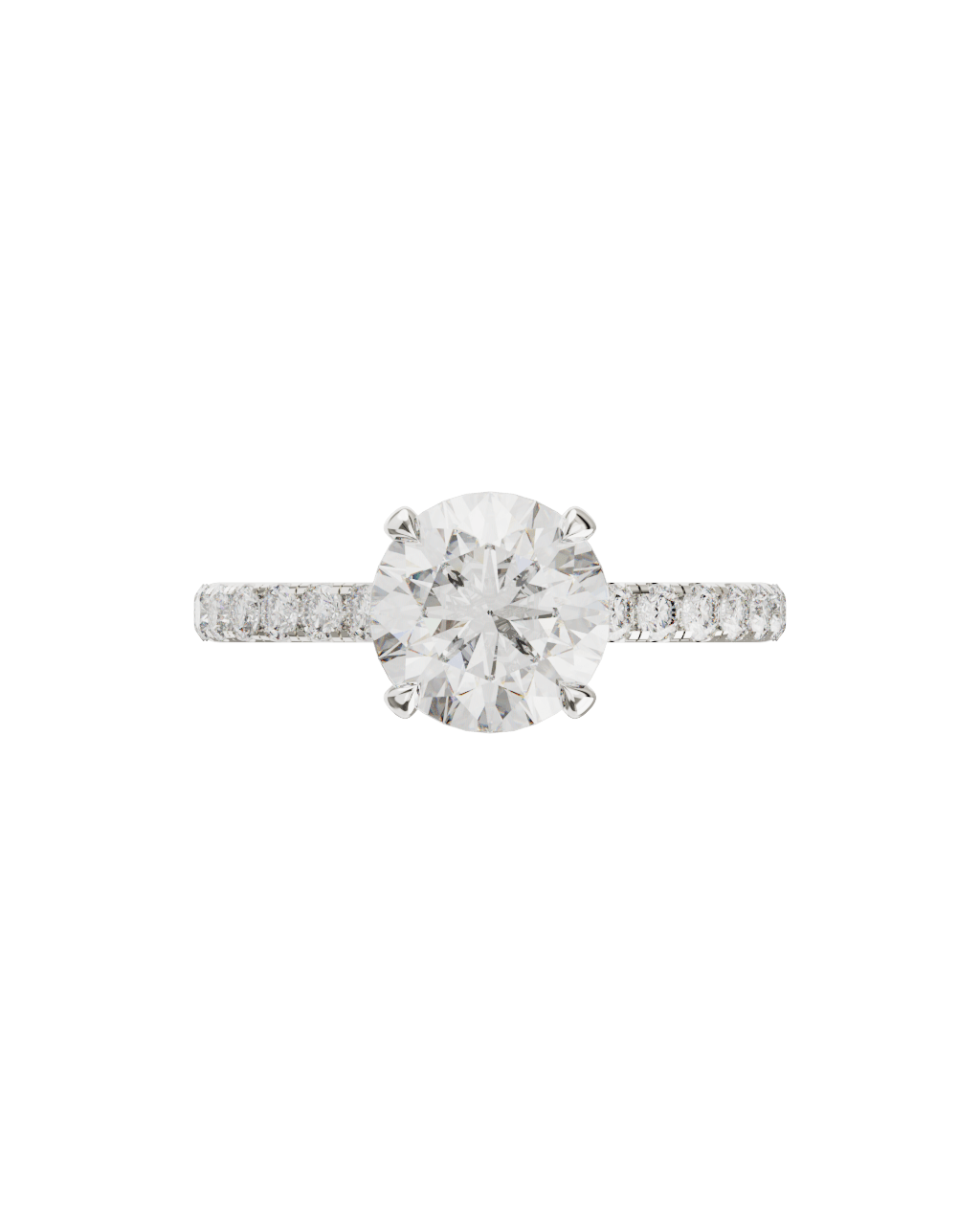Spécifications : Or 750/1000 3.0gr, Diamant de synthèse Central Rond de 2.0Ct, D, VS+ de diamètre 8.19mm entouré de 20 diamants de synthèse Ronds de 0.025Ct soit 2.50Ct total