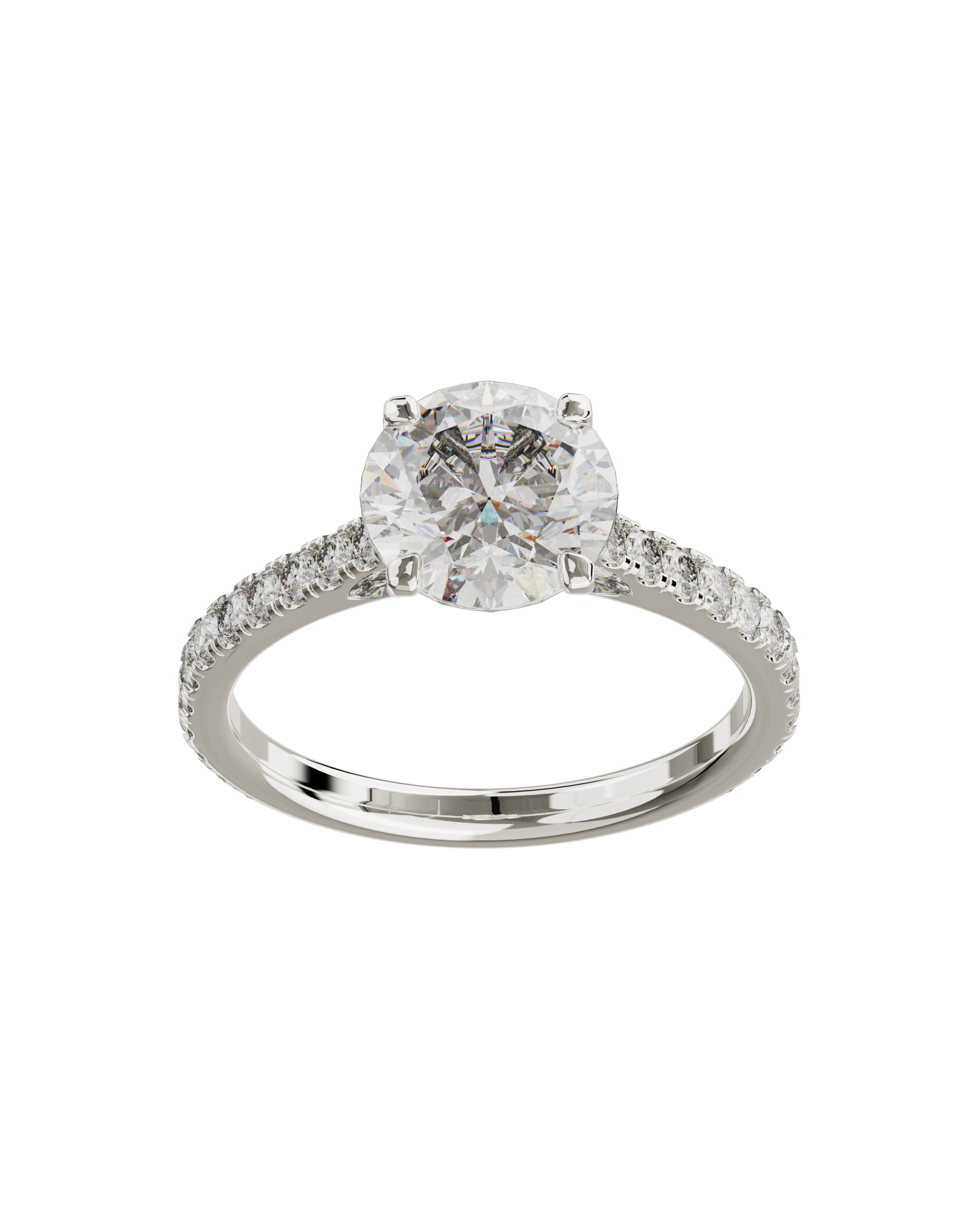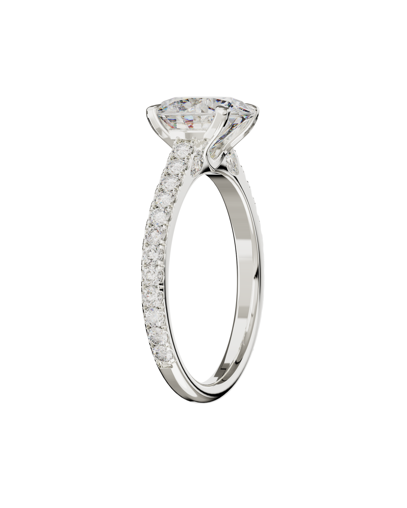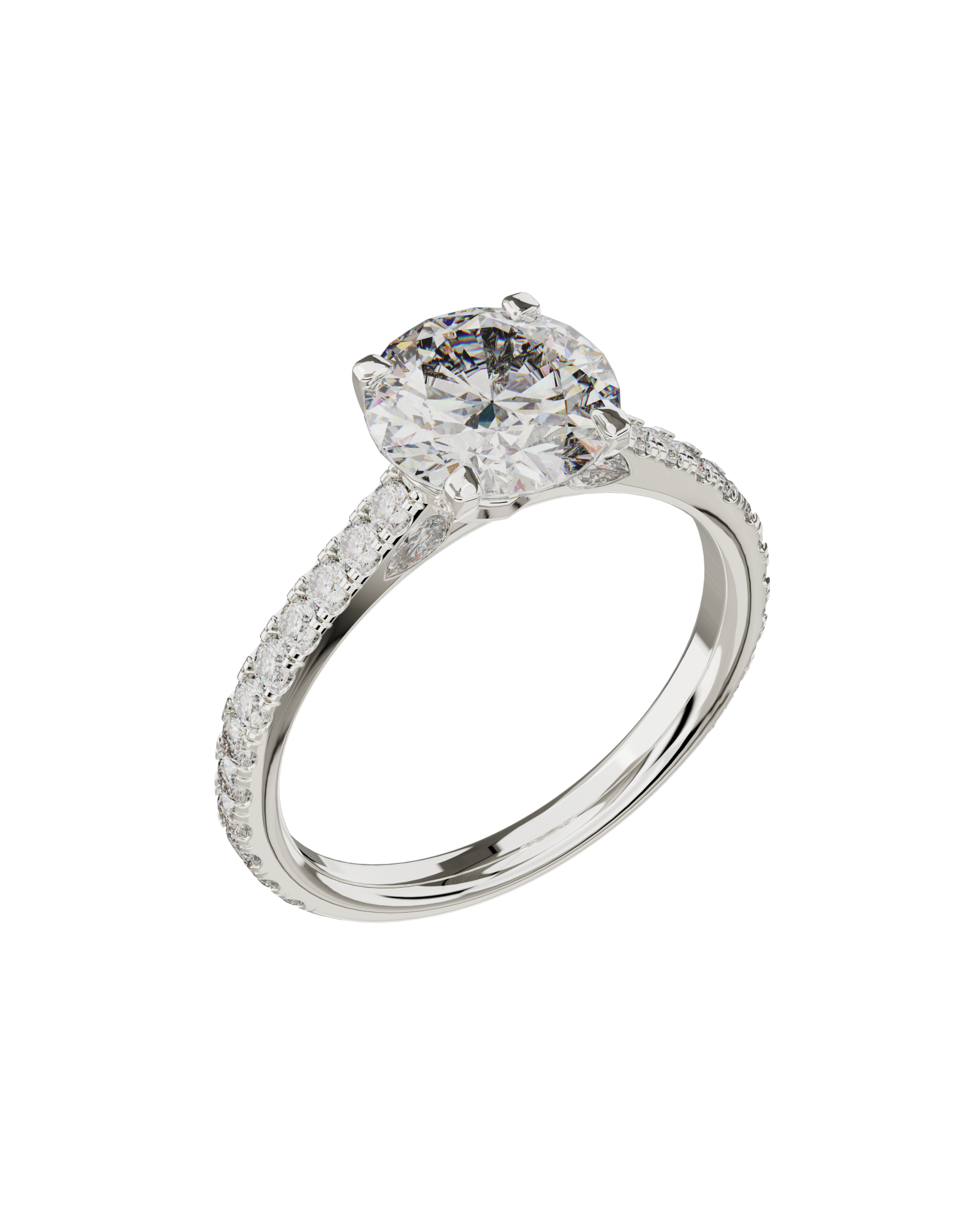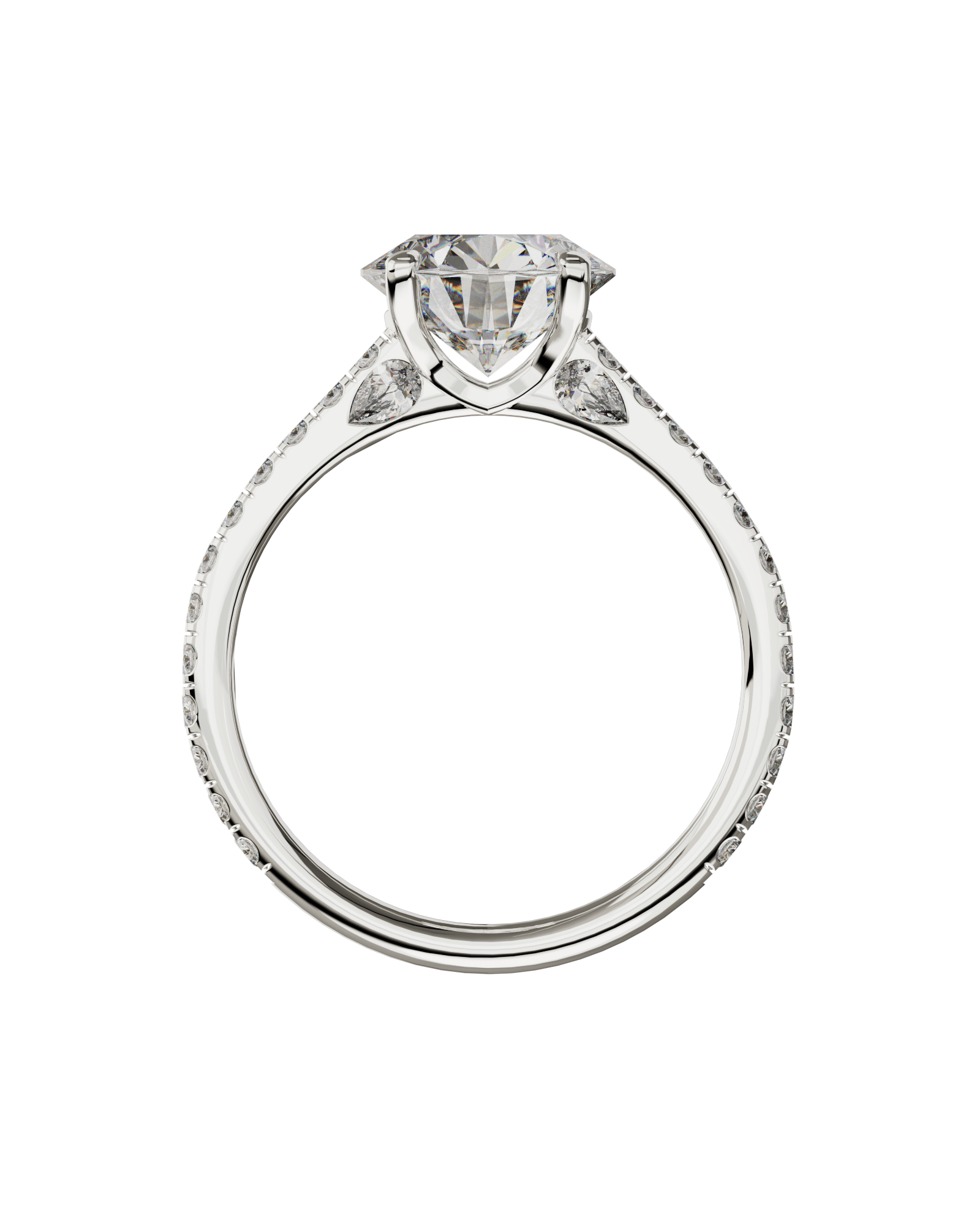 Spécifications : Or 750/1000 3.0gr, Diamant de synthèse Central Rond de 2.0Ct, D, VS+ de diamètre 8.19mm entouré de 4 diamants de synthèse Poire de 0.06Ct et de 22 diamants de synthèse Ronds de 0.022Ct soit 2.72Ct total