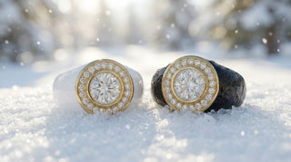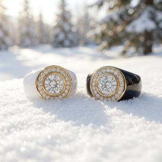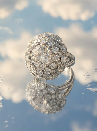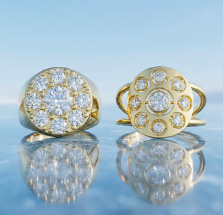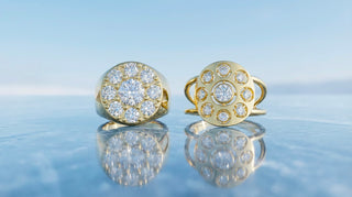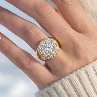 Un carat au centre. Autour, huit diamants de 0,3 carat chacun. Un halo réinventé, puissant, sculptural. Forgée en or massif, Daisy s’impose comme une pièce scintillante, féminine et puissante.
