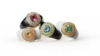 Ici, les diamants blancs laissent place à un jeu de teintes éclatantes rose, jaune, vert, bleu ou noir que chacun peut combiner à sa guise.