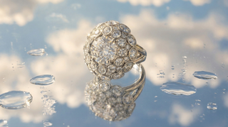 Son dôme, inspiré de la forme d’un œuf, abrite en son centre une pierre généreuse, entourée de trois rangées concentriques de diamants.