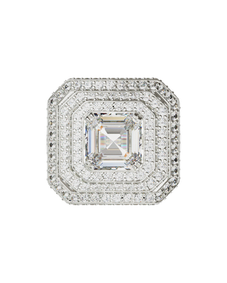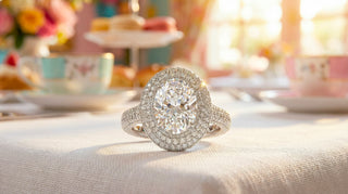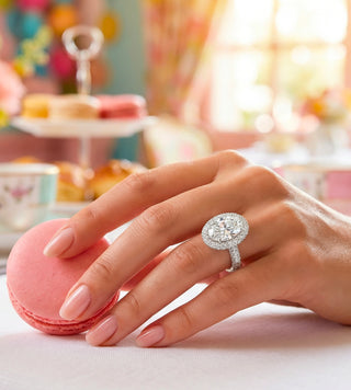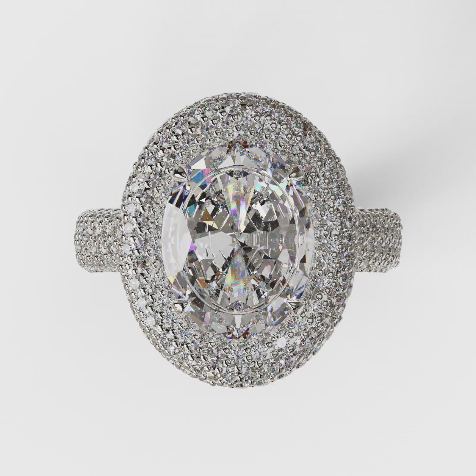 Une bague volontaire, lumineuse, sans compromis. Le diamant ovale semble flotter au centre d’un halo infini de pavage, où chaque pierre amplifie l’éclat de l’autre.Une création libre, faite pour rayonner”
